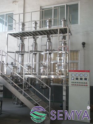 2、濃縮液料: 單效濃縮器采用外加熱自然循環(huán)與真空負(fù)壓蒸發(fā)相結(jié)合的方式,蒸發(fā)速度快,濃縮比可達(dá)1.3,液料在全密封狀態(tài)無泡沫濃縮,用單效濃縮器濃縮出來的藥液,具有無污染,藥味濃的特點(diǎn),而且清洗方便(打開加熱器的上下蓋即可進(jìn)行清洗)。單效濃縮器操作簡單,占地面積小。加熱器、蒸發(fā)器采用不銹鋼保溫結(jié)構(gòu),保溫層外用不銹鋼薄板制作外殼,表面做鏡面或亞光處理。
